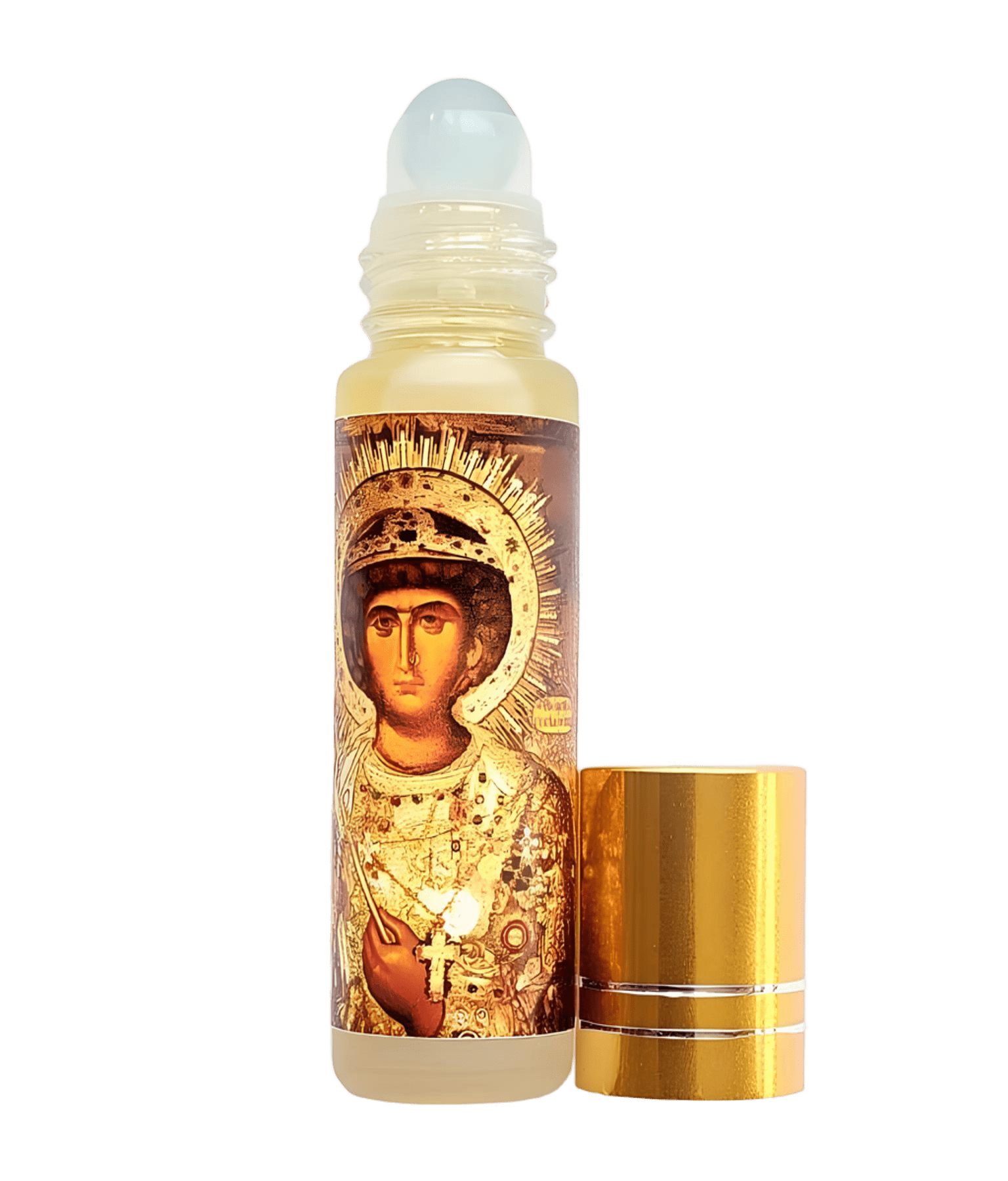 ● În uleiul de măsline, sfinţit de călugării athoniţi prin Taina Sfântului Maslu, este pus şi undelemn din candela de la Icoana Sfântului Mare Mucenic GHEORGHE.